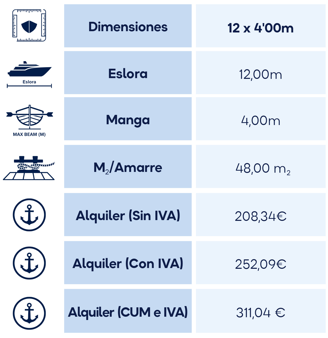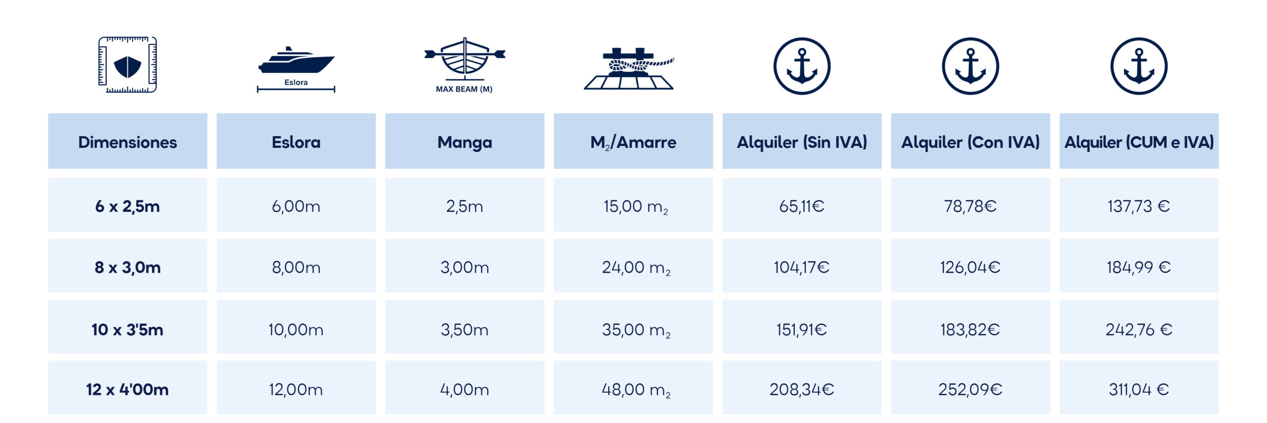 Alquiler de amarre Temporada baja (octubre 2025 -mayo 2026)